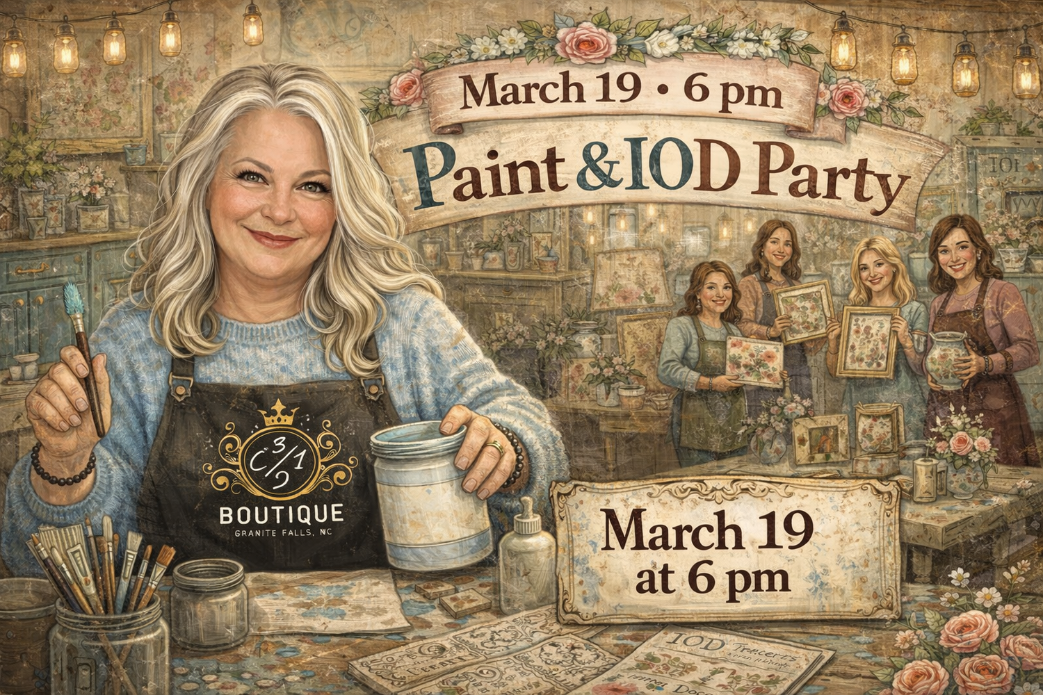 Make-n-take night, learn Farmhouse paint & IOD techniques, and ask Wendy anything!