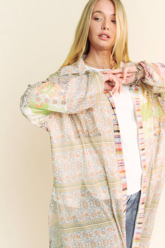 Lena Sheer Buttton-Up Top/Kimono | Pink Multi