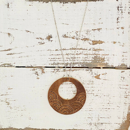 Necklace: Embossed Large Rainbow Circle Vintage Cowboy Brown