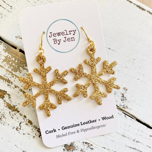 Snowflake Earrings: Gold Fine Glitter