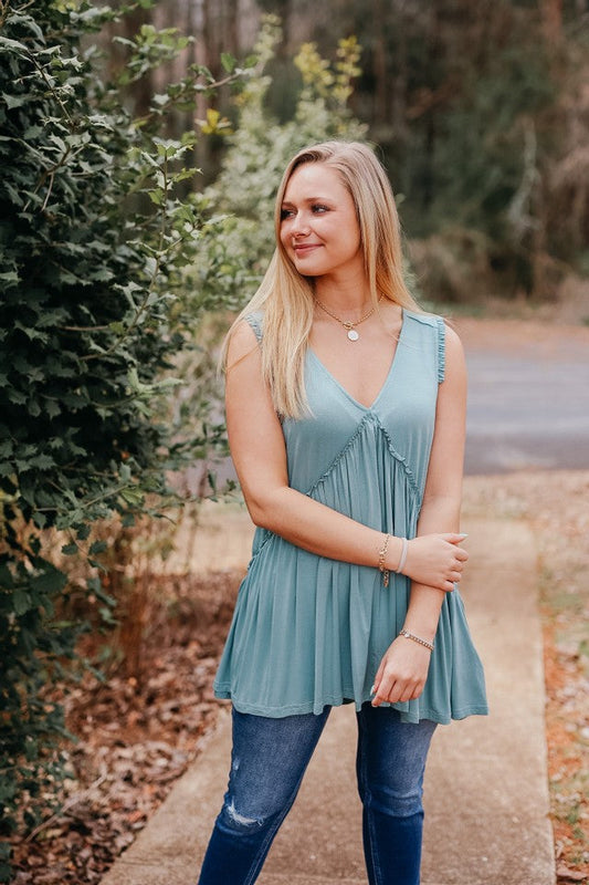 Sold outTeal Ruffle V-Neck Sleeveless Top