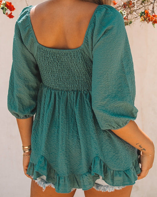 Chicos Hreen Square Nexk Top with Pockets | size 1, med