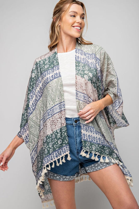 Dreamcatcher Chiffon Tassel Kimono | Moss Teal