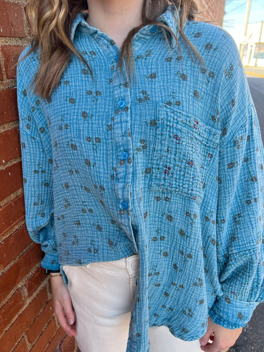 Day Blue Gauze Floral Shirt