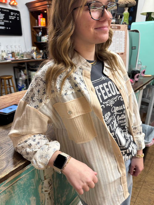 Floral & Stripe Oversized Shacket/Shirt