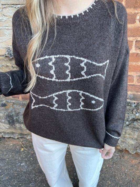 Fishy Knit Sweater| Coffee