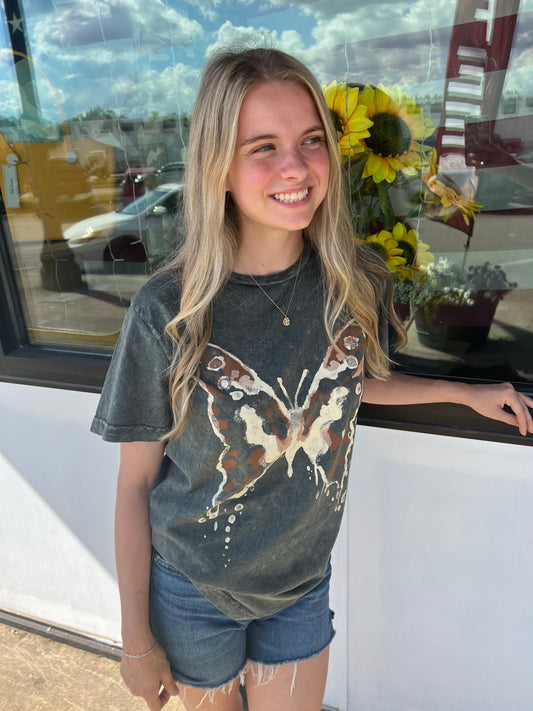 Butterfly Mineral Wash Graphic Tee | Stone Gray