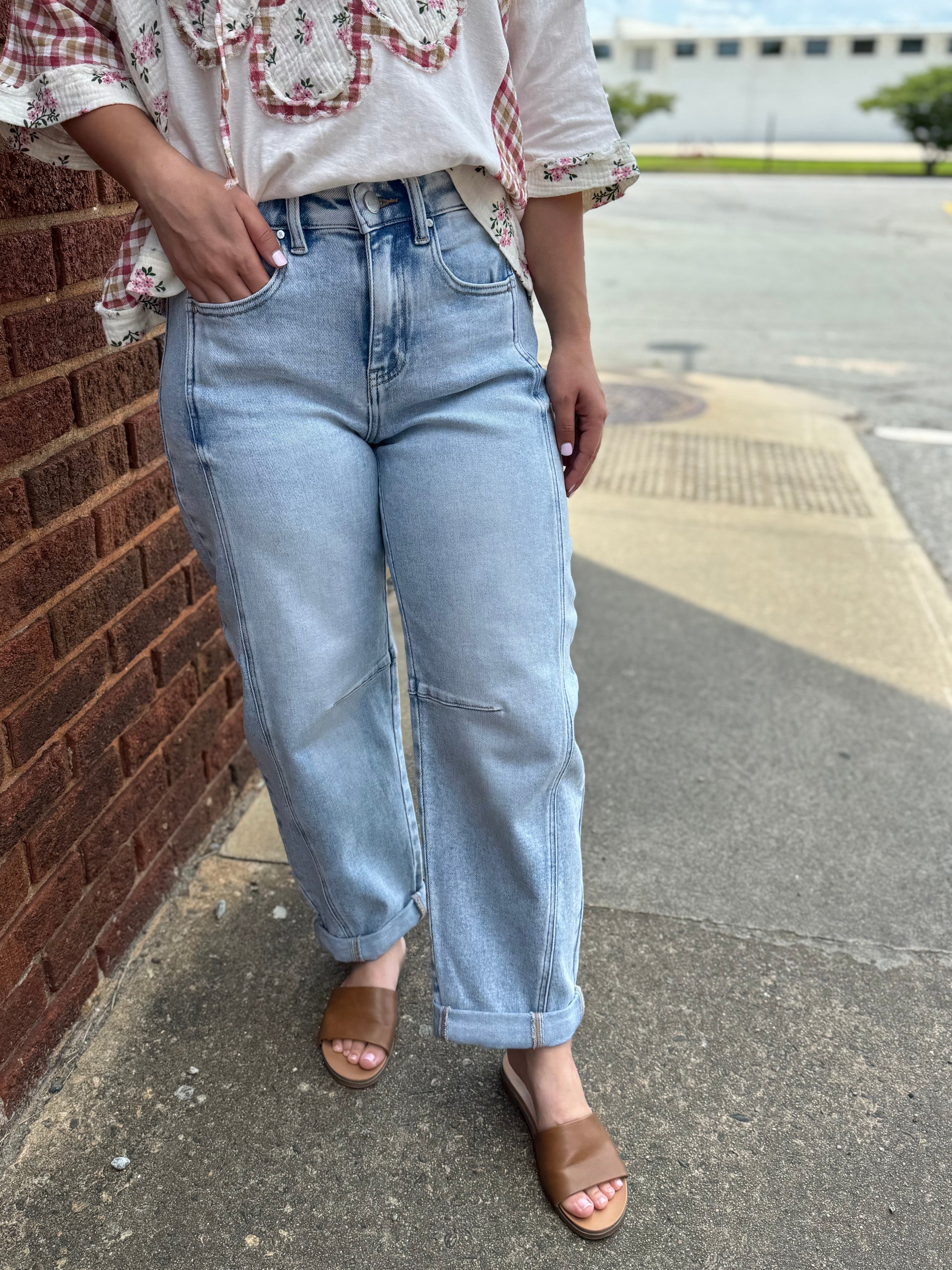 Step into effortless cool with our Blue Haze Barrel Jeans in a light wash. These jeans bring a breezy vibe to your wardrobe, perfect for sunny days and spontaneous adventures. The relaxed barrel shape adds a fun twist to classic denim, making every step feel playful and free. Pair them with your favorite tee or a flirty top for an easygoing look that’s all about comfort and style.