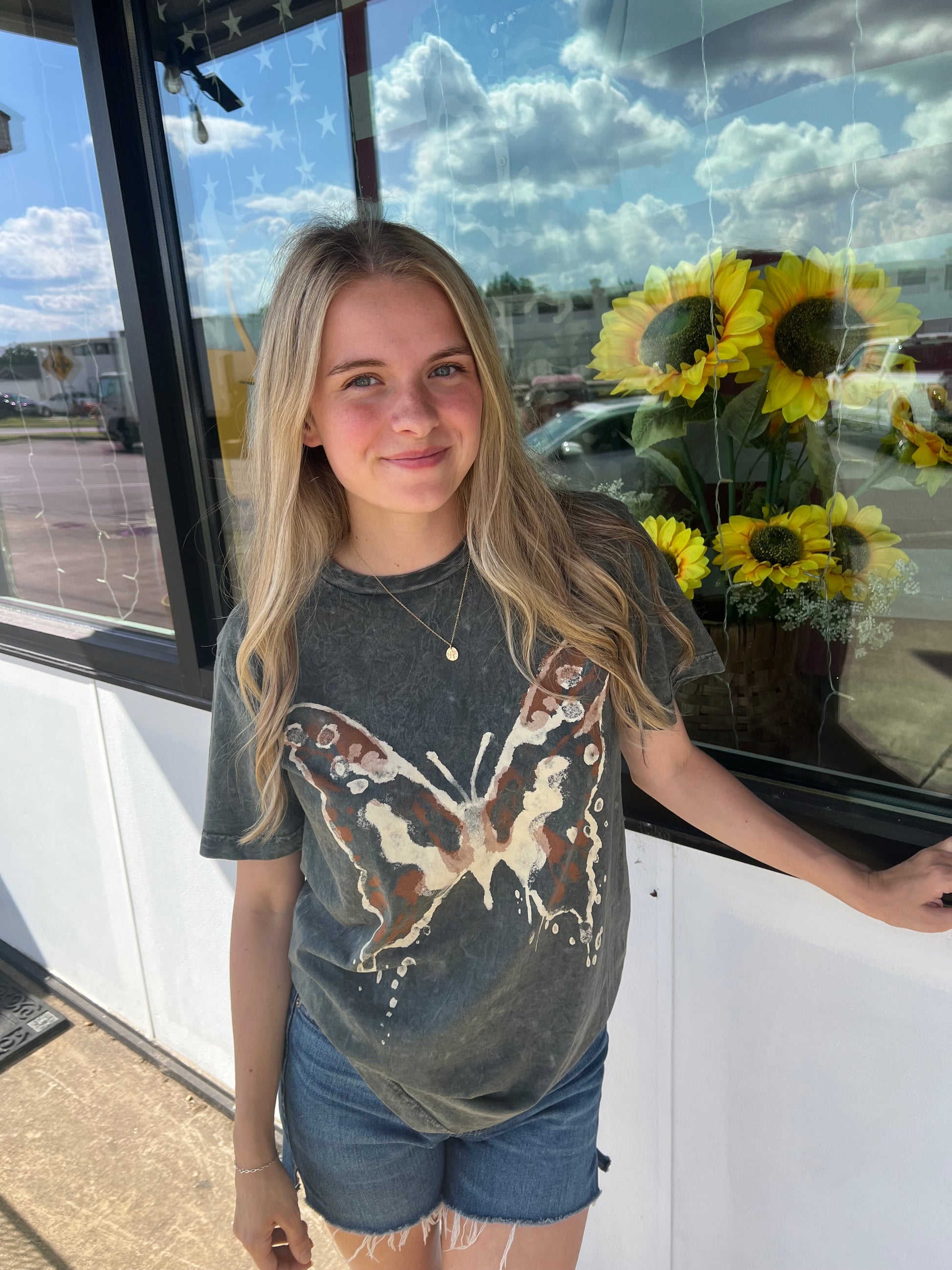 Butterfly Mineral Wash Graphic Tee | Stone Gray