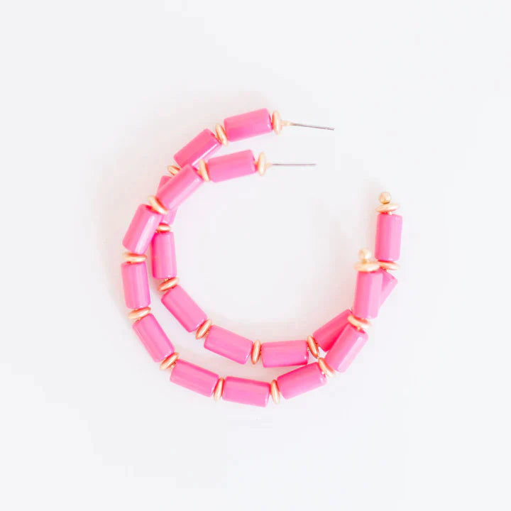Part of the colorful collection, Cara Earrings feature beautiful colors with gold accents. Making them perfect statement hoops.