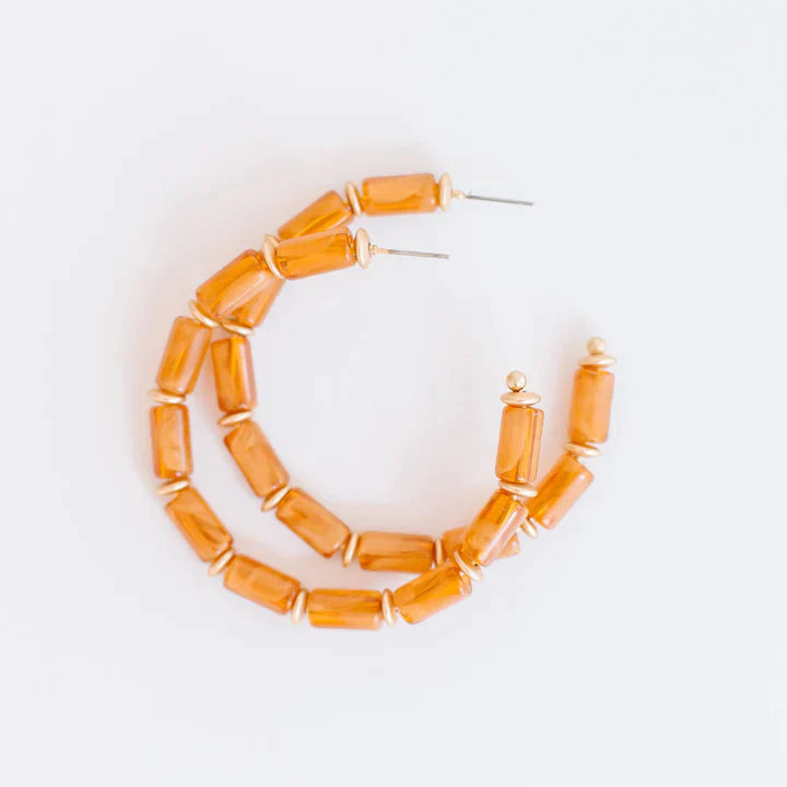 Part of the colorful collection, Cara Earrings feature beautiful colors with gold accents. Making them perfect statement hoops.