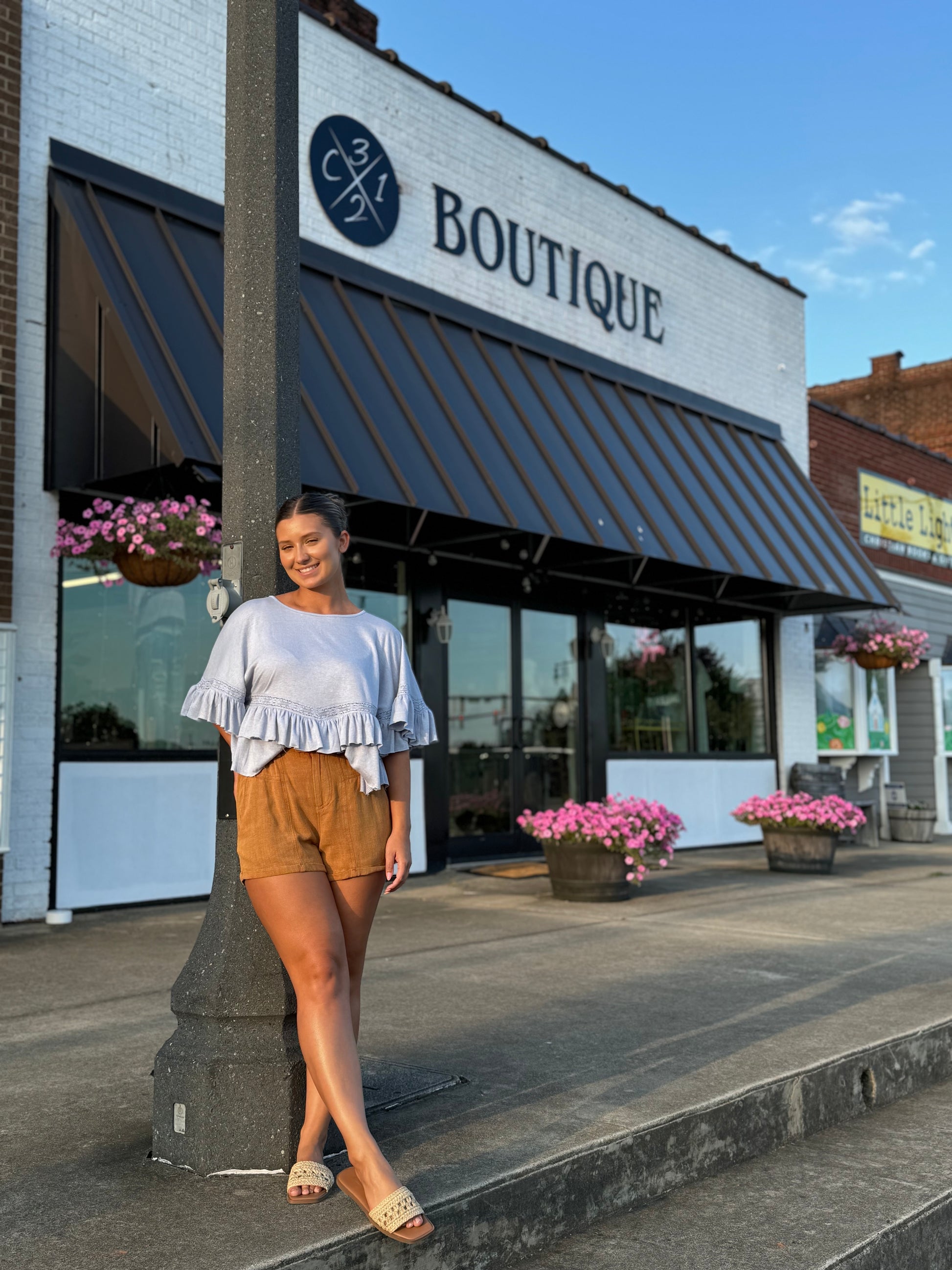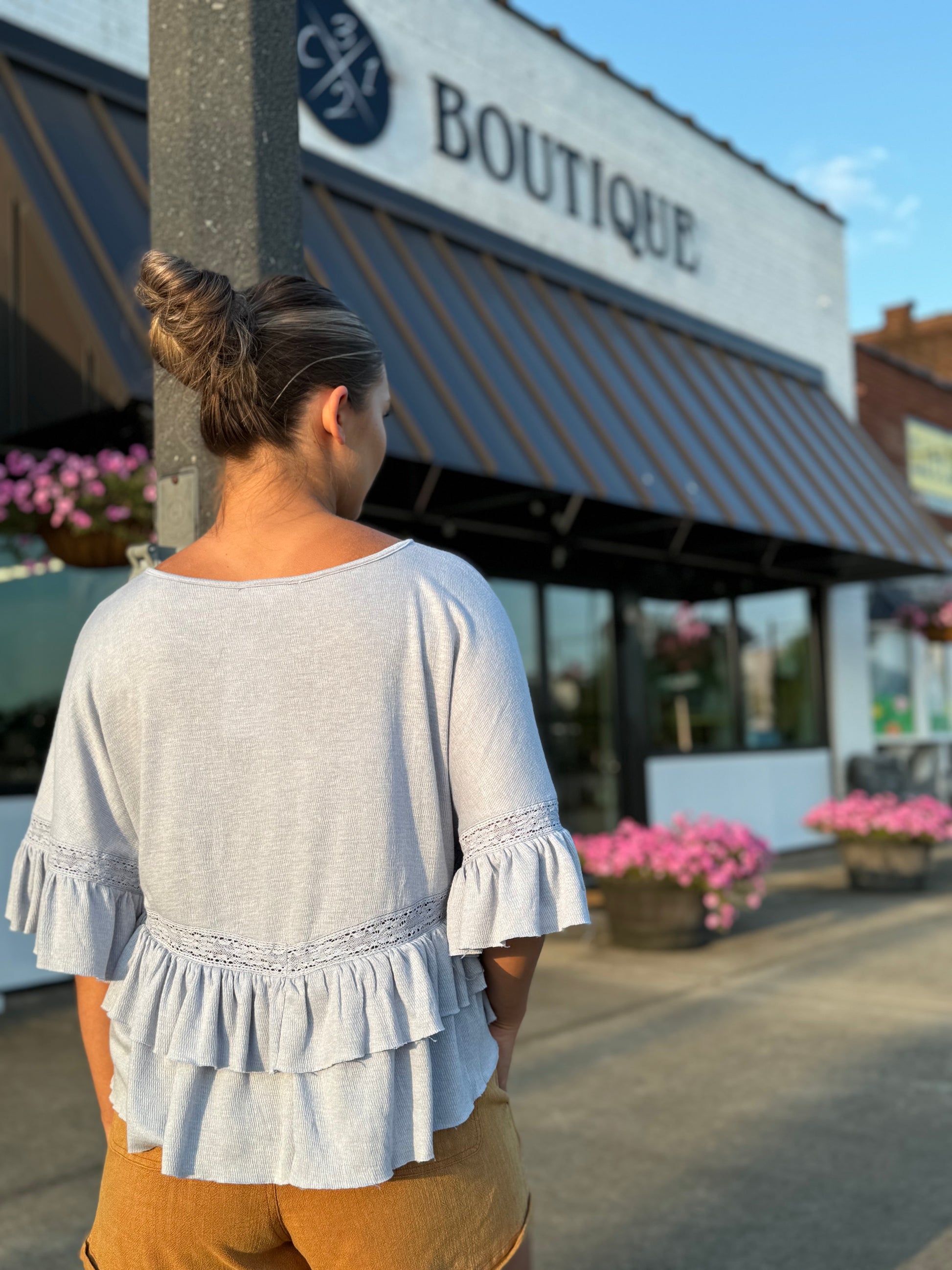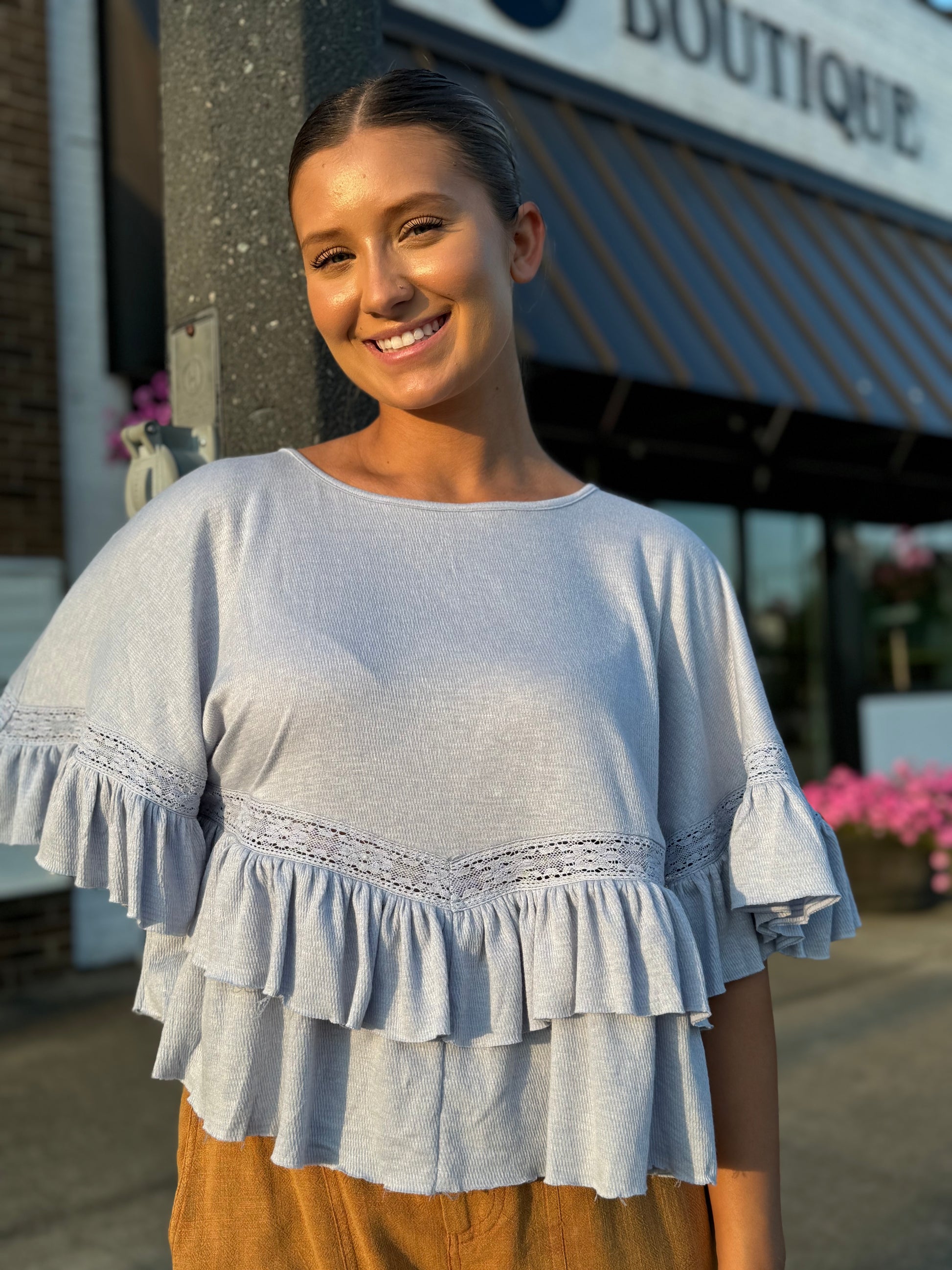 Get ready to turn heads with our Cascade Charm Ruffle Top! This fun knit top features a boat neckline and a double-ruffled bottom for a fun and playful look. With a relaxed and loose fit, this top is perfect for any occasion. Made with crinkle rayon fabrication, it's not only stylish but also comfortable and easy to care for. Add this cropped top to your wardrobe for a touch of charm and style.