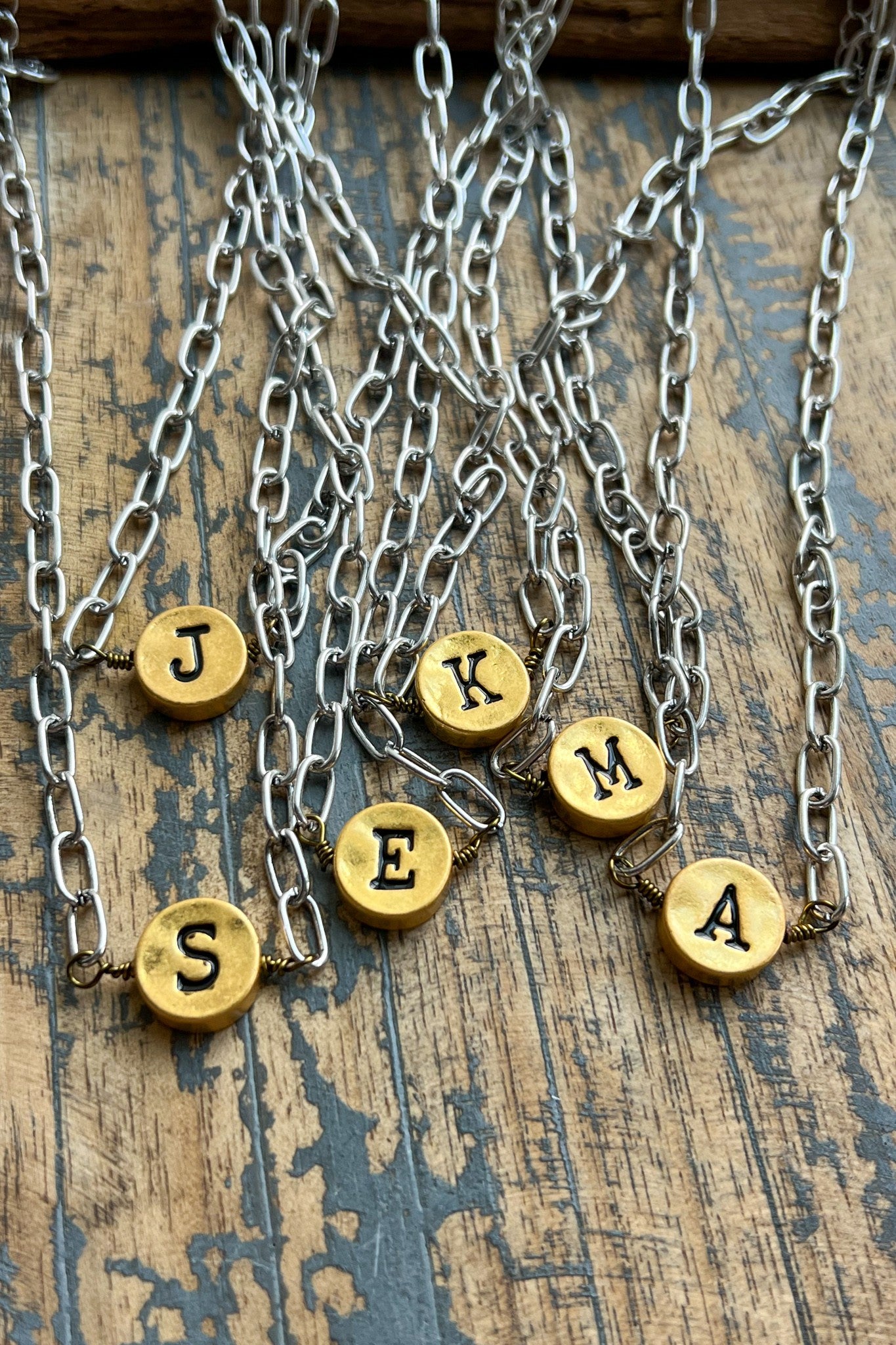 Express yourself with our Circle Initial Pendant Necklace! Made with a silver chain link and a gold circle pendant, this necklace is both stylish and versatile.
