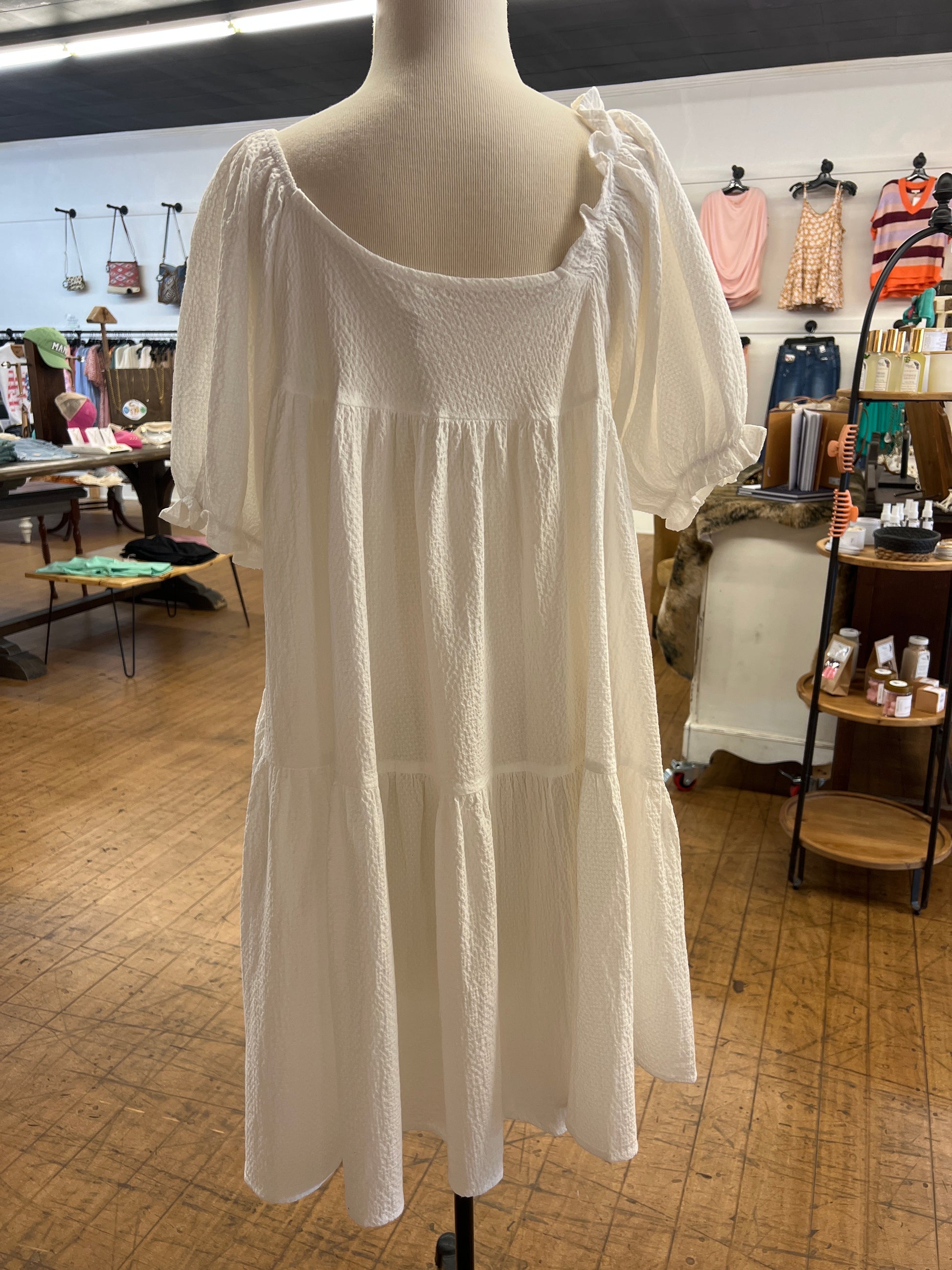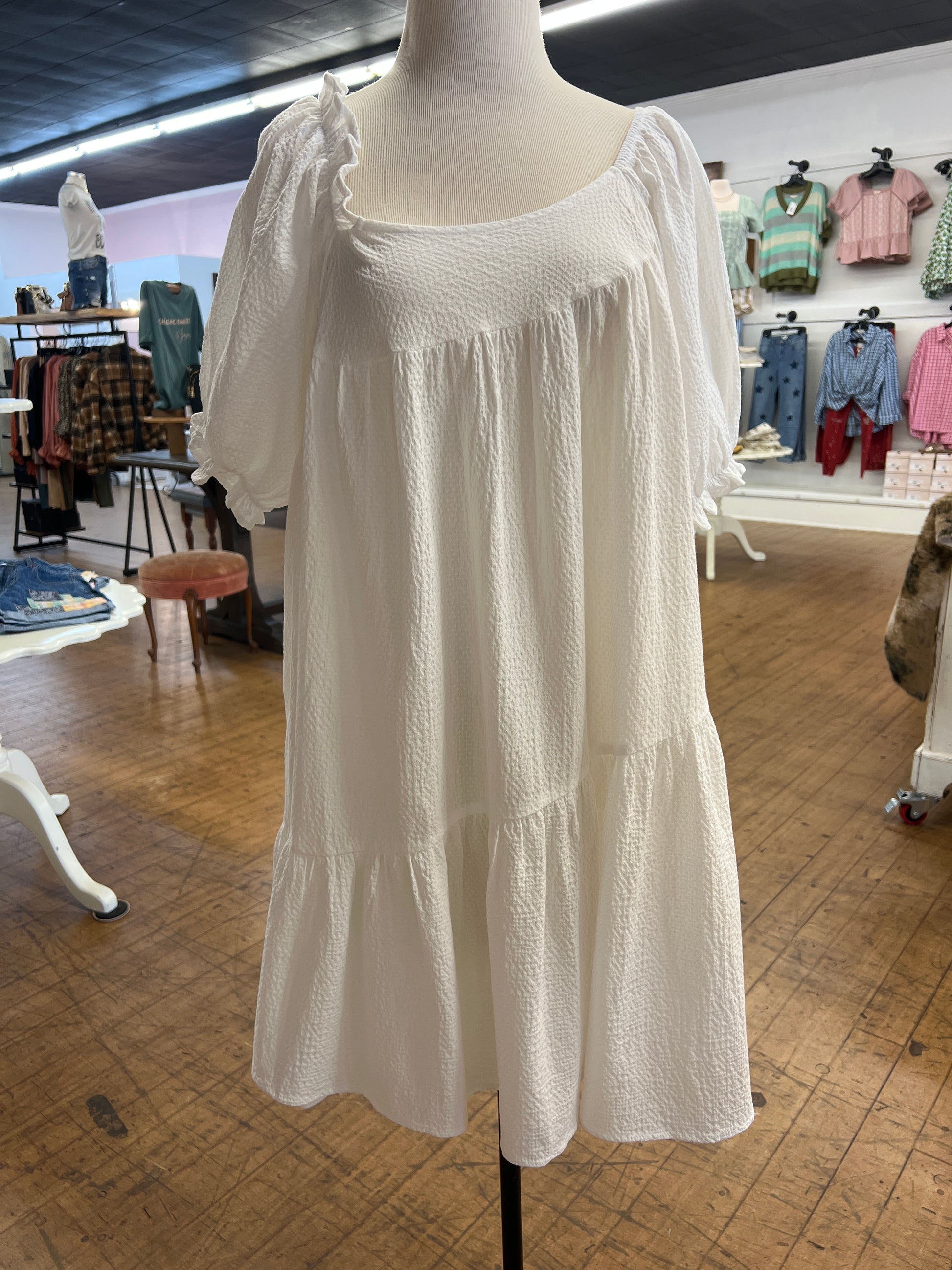 Channel your inner goddess with our Cloud Nine Puff Sleeve Cotton Dress. Made from textured cotton, this cute white dress will have you feeling like you're walking on air. Perfect for a casual day out or a fun night on the town.