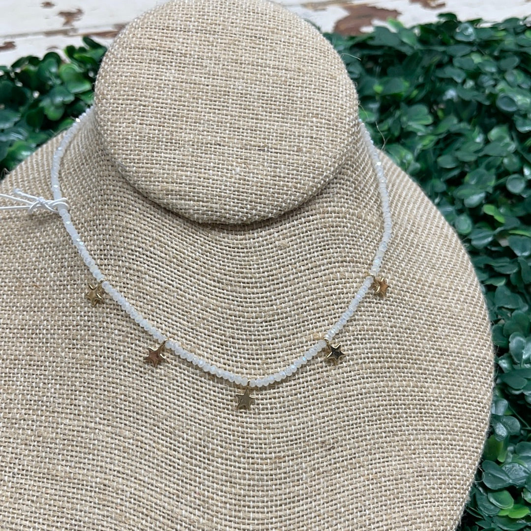Dee White Opal Necklace with Dangling Gold Star Accents