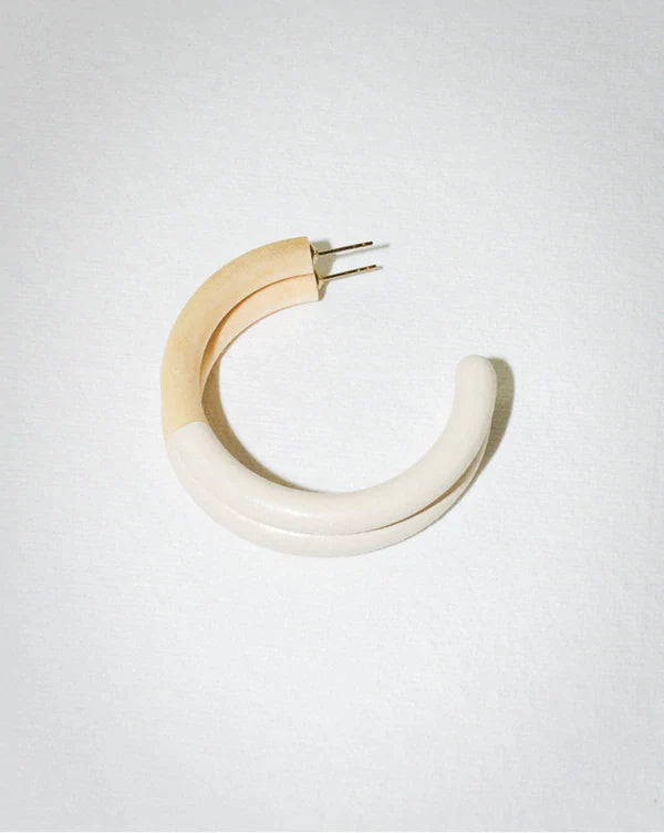 Cream C shaped hoop with butttery two toned dip. Super lightweight and made out of mango wood.