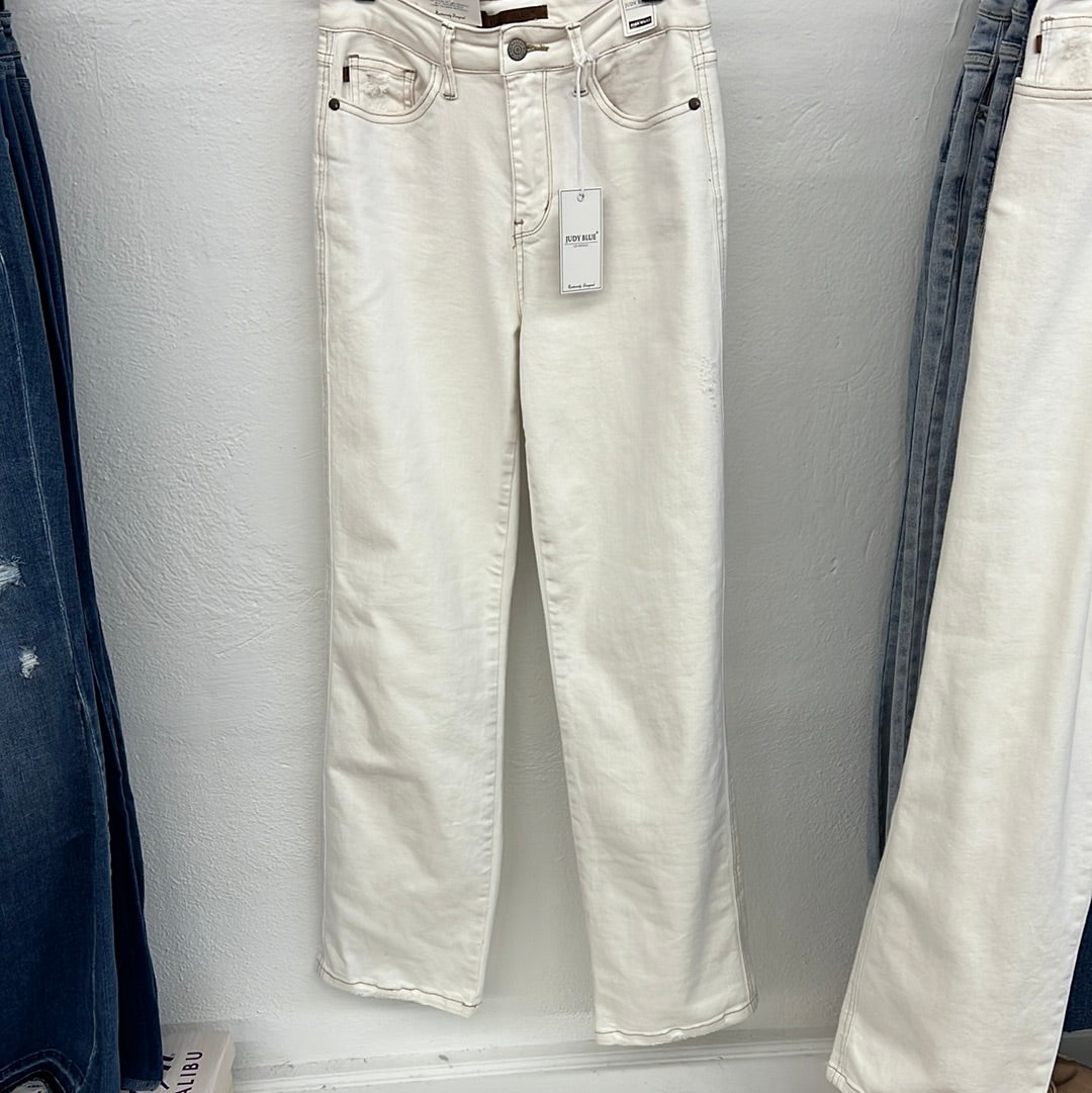 Elevate your denim game with these stylish Diana Straight Leg Jeans from Judy Blue. Featuring a flattering hi-waist and straight leg cut, these jeans are made with stretchy denim for ultimate comfort. The white color and contrast stitch add a chic touch, while the classic five pocket cut and zipper fly make them versatile for any outfit.