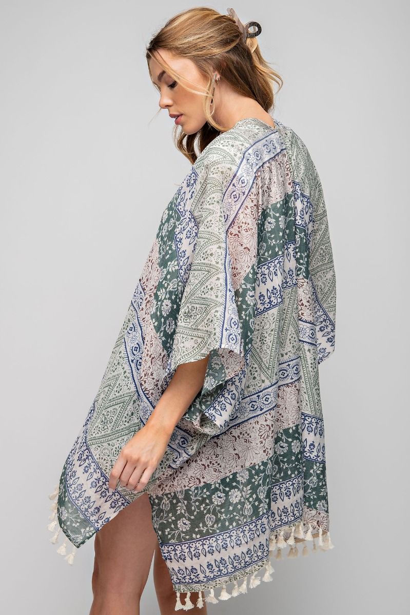 Dreamcatcher Chiffon Tassel Kimono | Moss Teal
