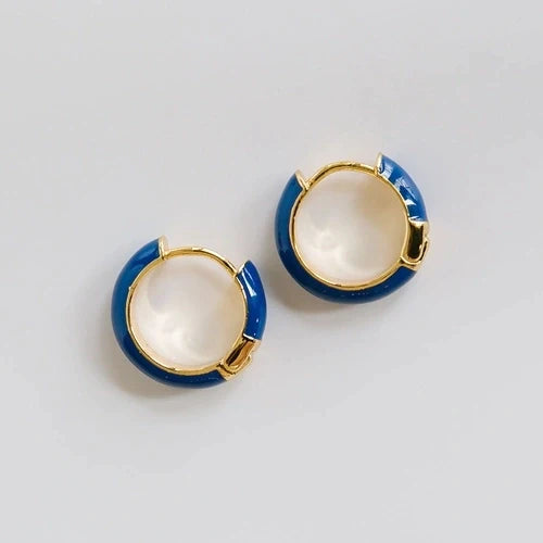 Enamel royal blue covered huggie earrings, . 5”,nickel and lead-free, hypoallergenic