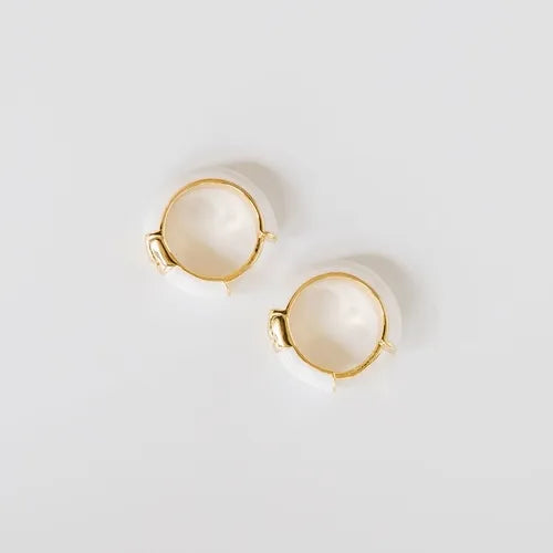 Enamel white covered huggie earrings, . 5”,nickel and lead-free, hypoallergenic