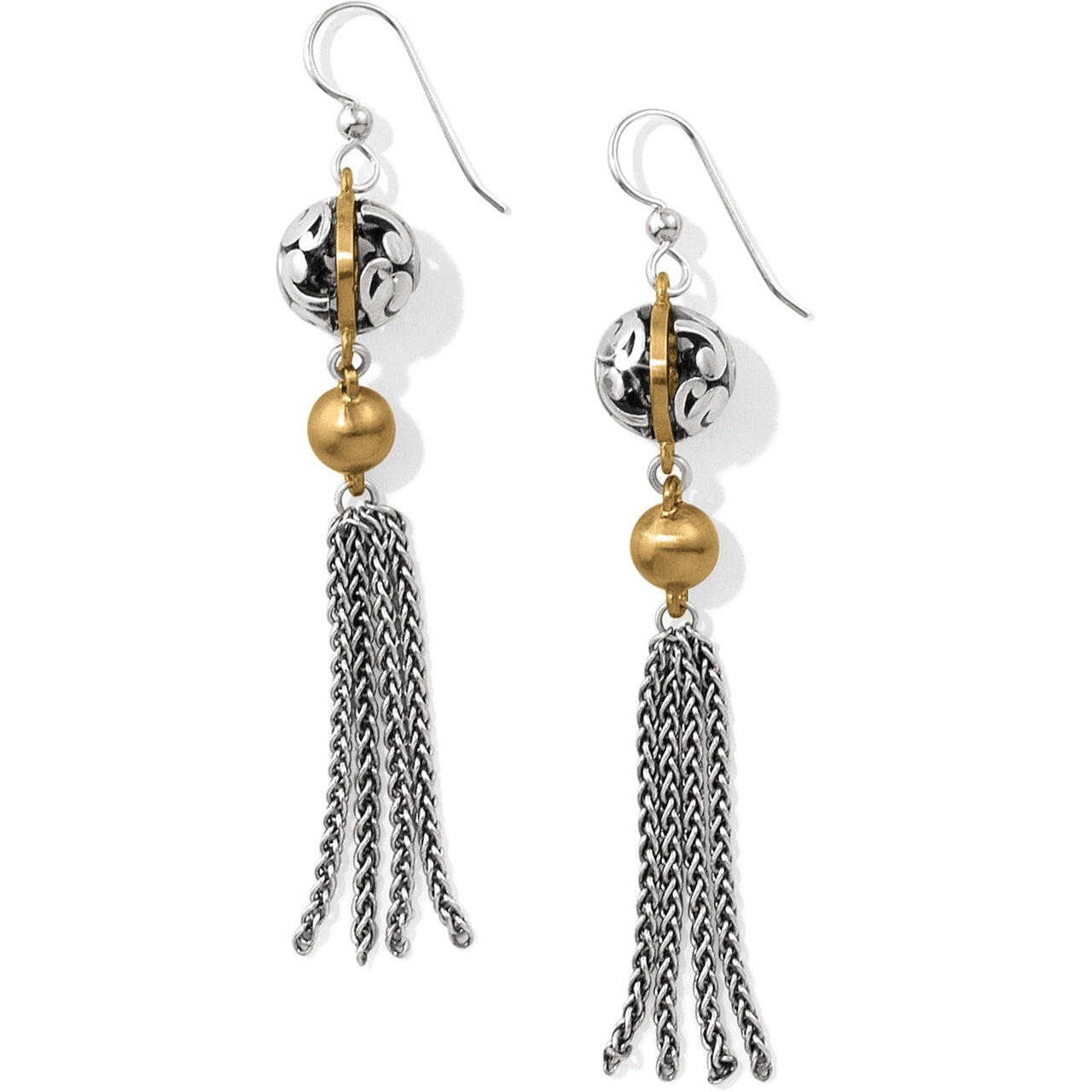 Pierced openwork gives a feminine flourish to these mixed metal tassel earrings.