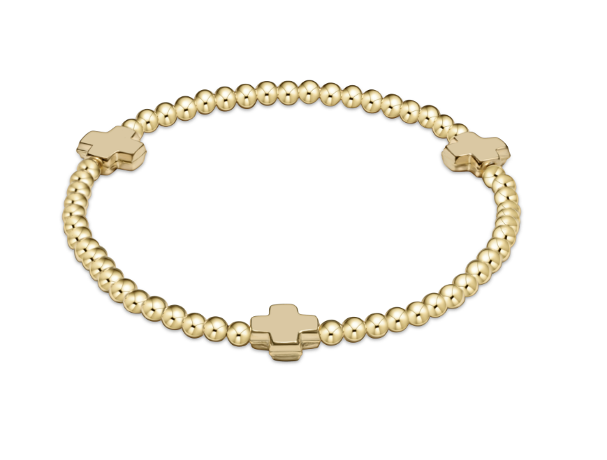 eNewton - Signature Cross Gold Pattern 3mm Bead Bracelet
