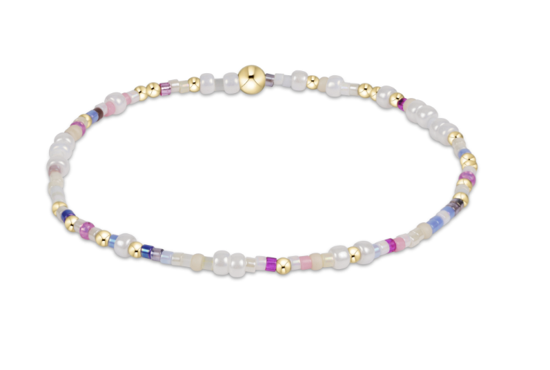 Add a splash of color and sparkle to your day with the Hope Unwritten Bracelet - With Sprinkles On Top. This playful bracelet features a cheerful mix of white, pink, blue, and pearl beads, accented by shimmering 14k gold beads for a touch of elegance. Perfect for brightening any outfit and reminding you that the best is yet to come.