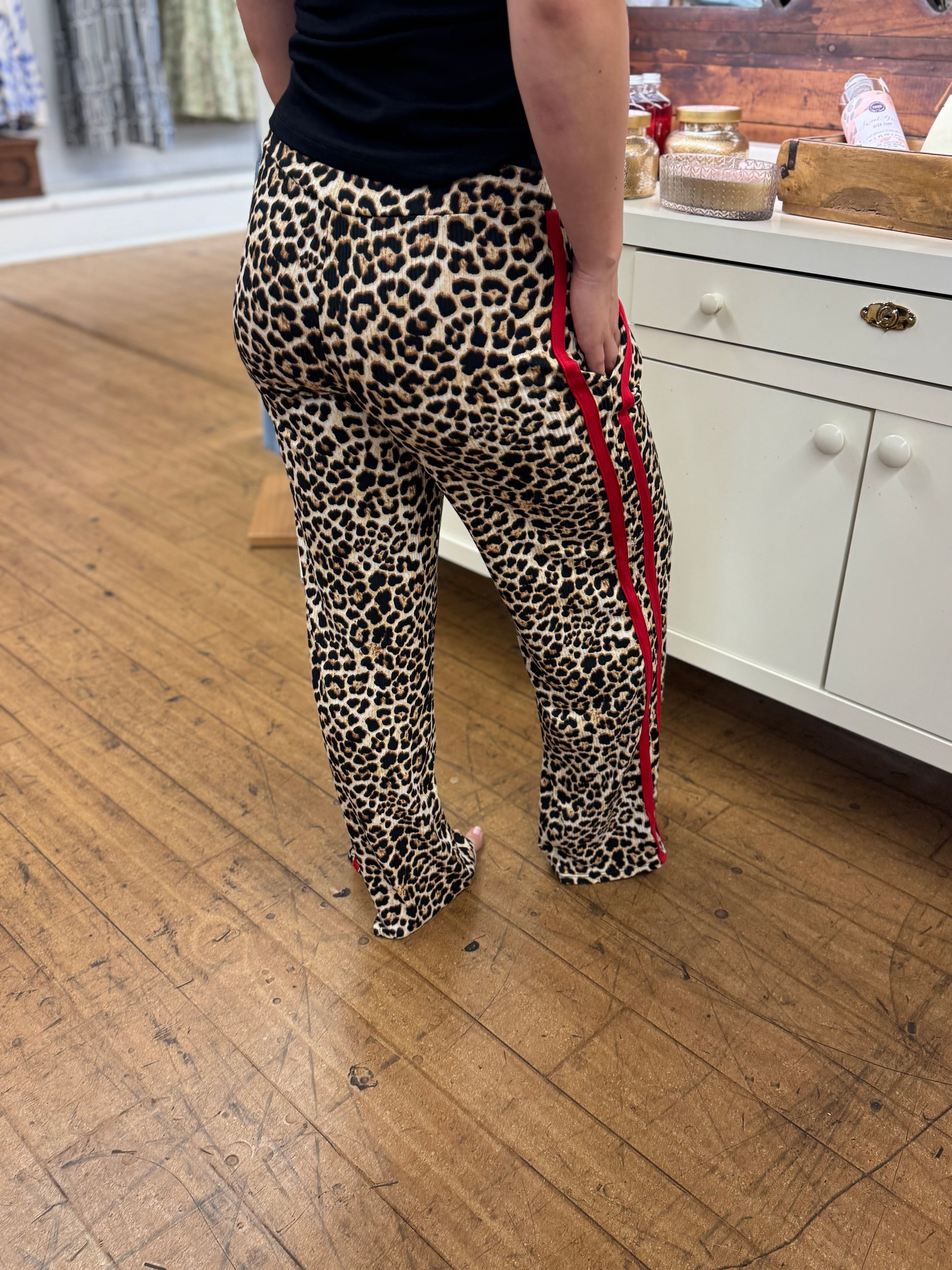 Unleash your wild side with the Purrr-fect Redline Pants! Featuring bold leopard print paired with a striking red side stripe, these pants add a playful edge to any outfit. Comfortable and eye-catching, they’re perfect for standing out while staying cozy.