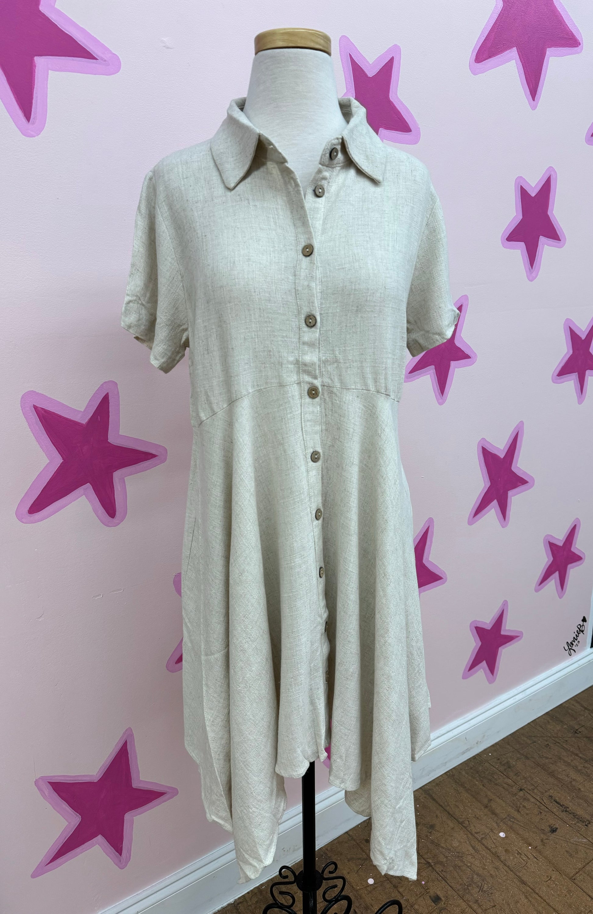 Introducing the Linen Breeze Dress - the perfect combination of flowy and light, in a beautiful oatmeal color. So why not breeze through your day in style with this dress?