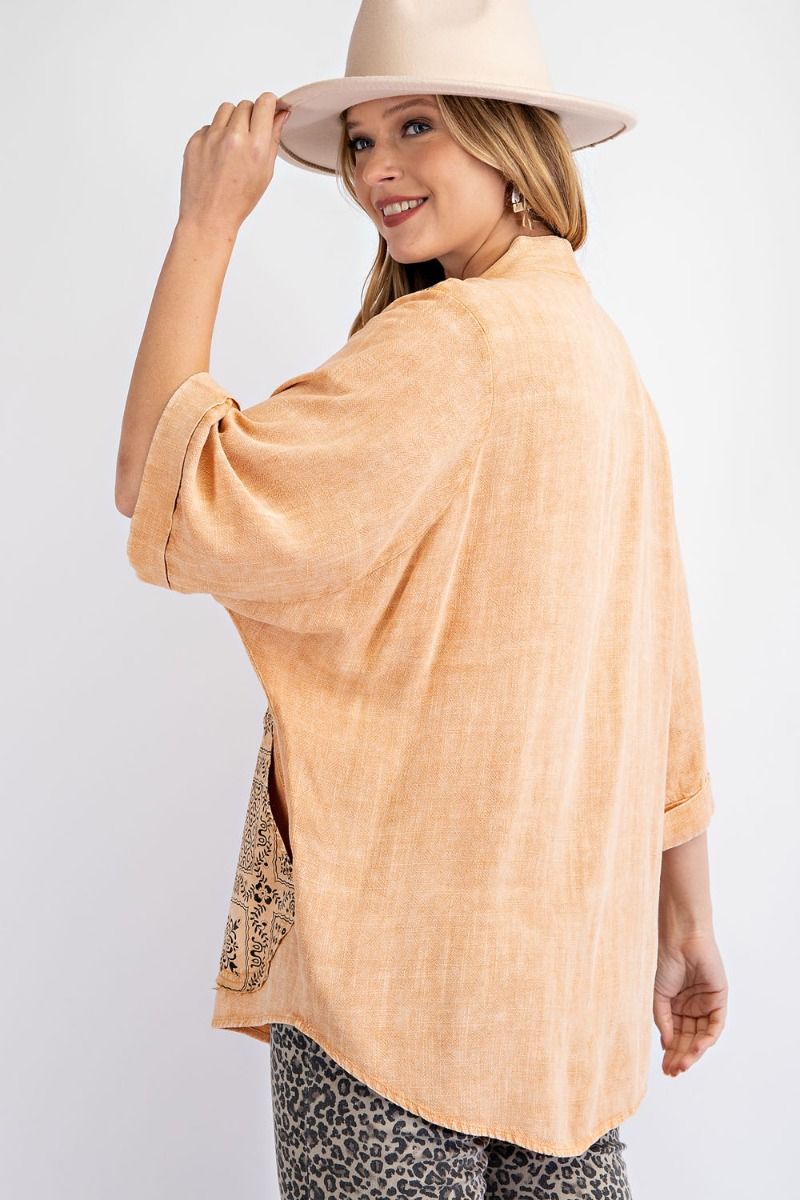 Add a splash of style to your wardrobe with our Coral Reef Patchwork Cardigan. The unique mineral wash gives it a one-of-a-kind look, while the stamped linen patch pockets add a touch of whimsy. Stay cool and chic in this playful and versatile cardigan!