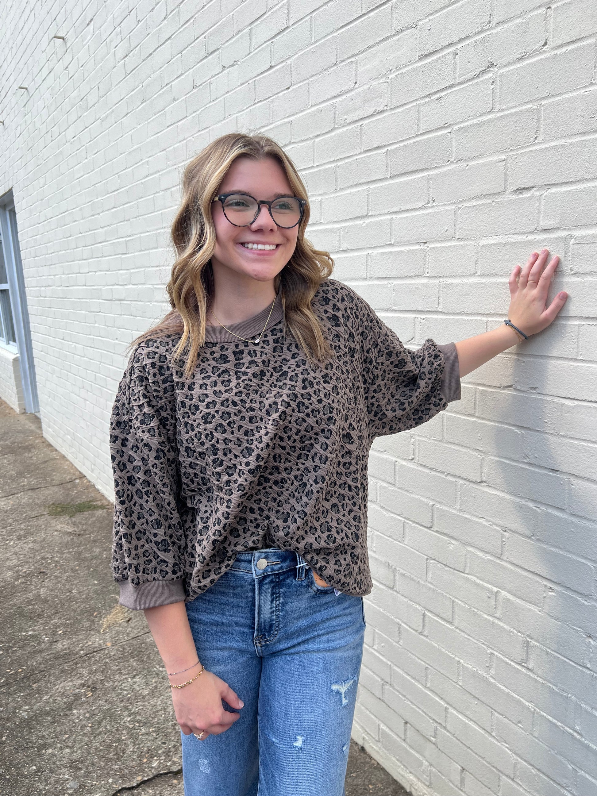 Embrace playful comfort with the On the Prowl Puff Sleeve Sweatshirt. Featuring an eye-catching animal knit jacquard pattern, ribbed crewneck, and hemline, plus charming short puff sleeves, this cozy sweatshirt adds a fun twist to your casual look.