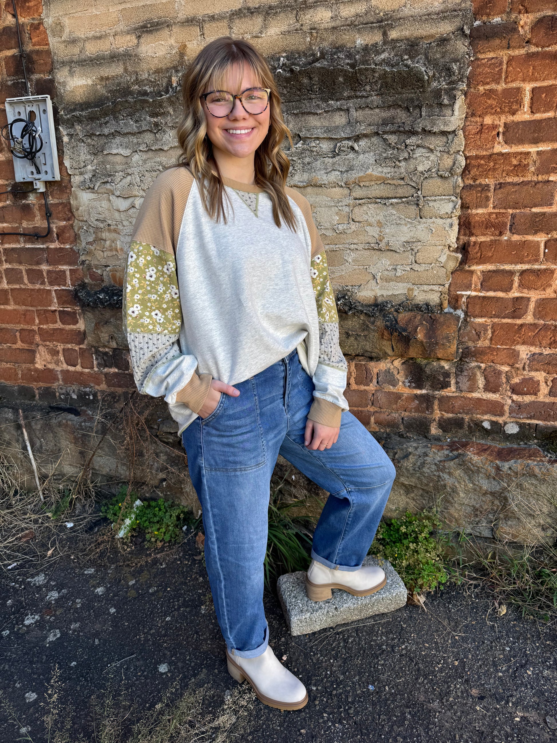 Embrace cozy vibes with this Heather Grey Patchwork Pullover. Featuring a relaxed, oversized fit and a comfy crew neckline with ribbed trim, it’s mineral washed for extra softness. The playful patchwork sleeves mix floral and dotted prints to brighten up any outfit. Perfect for adding a fun, laid-back touch to your wardrobe!