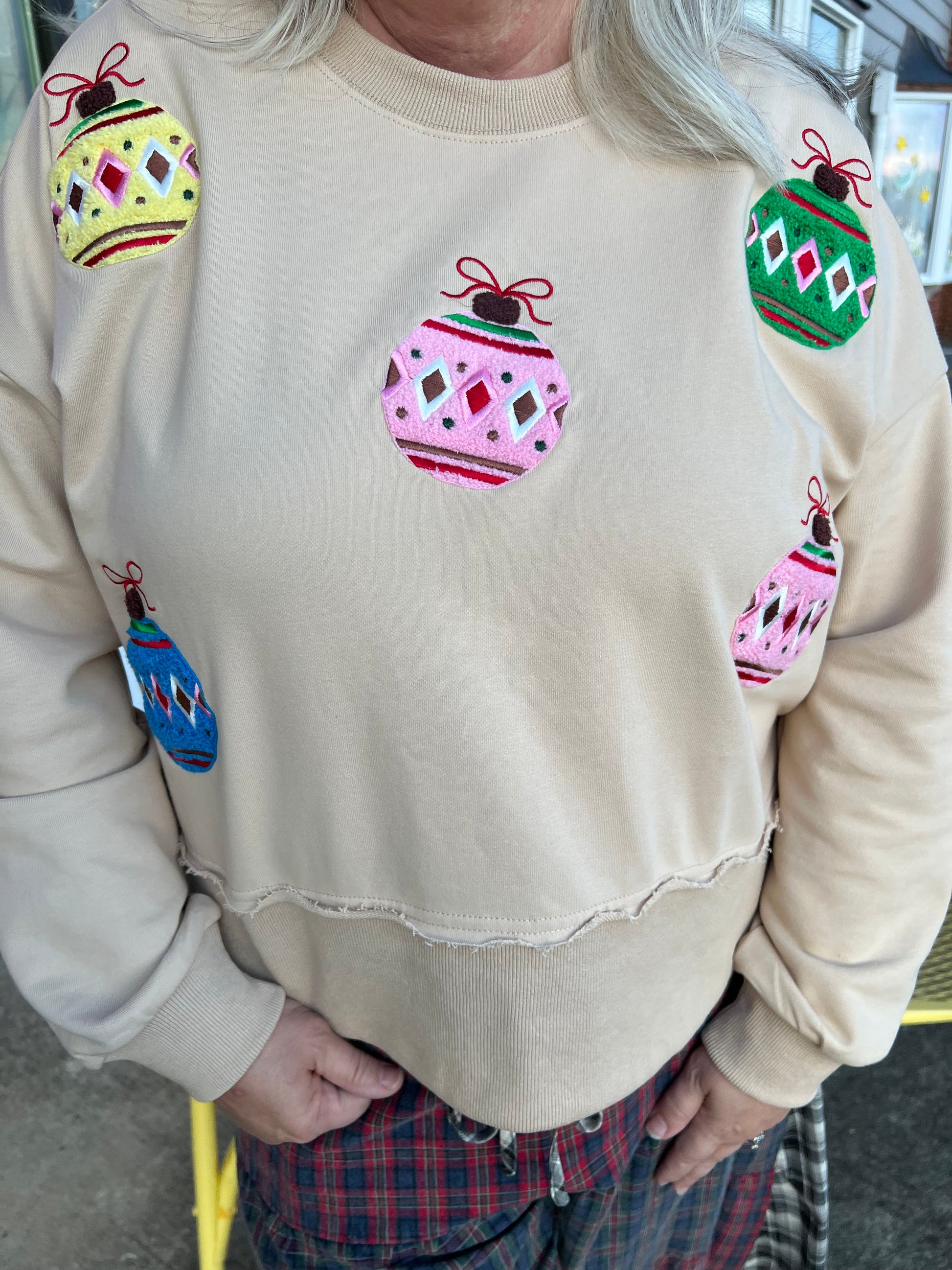 Wrap yourself in cozy comfort with this relaxed crewneck sweatshirt, adorned with vibrant ornament embroidery that brings festive cheer to your everyday wardrobe. The laid-back fit makes it perfect for lounging, running errands, or casual hangouts with friends. Soft and inviting, it's the kind of piece you'll reach for again and again when you want to feel both stylish and snug.