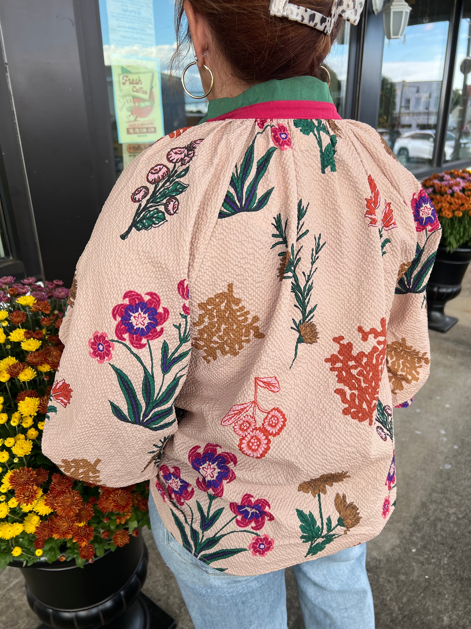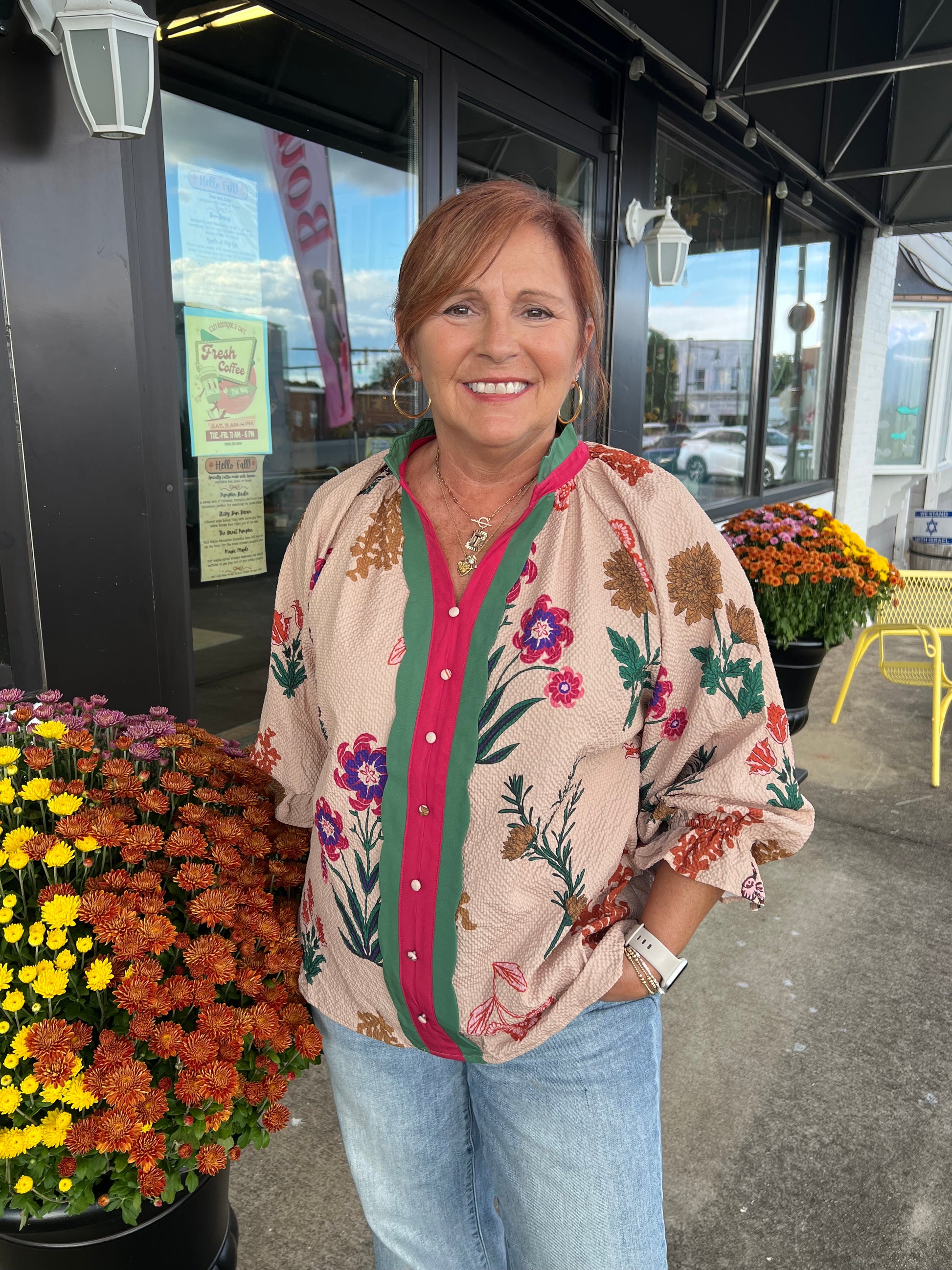 Add a touch of charm to your wardrobe with the Rosalind Scallop Blouse in tan. Featuring a delightful mix of floral textures and playful scalloped trim, this blouse brings a fun, feminine vibe to any look. Lightweight and comfortable, it’s perfect for dressing up or keeping it casual with your favorite jeans.