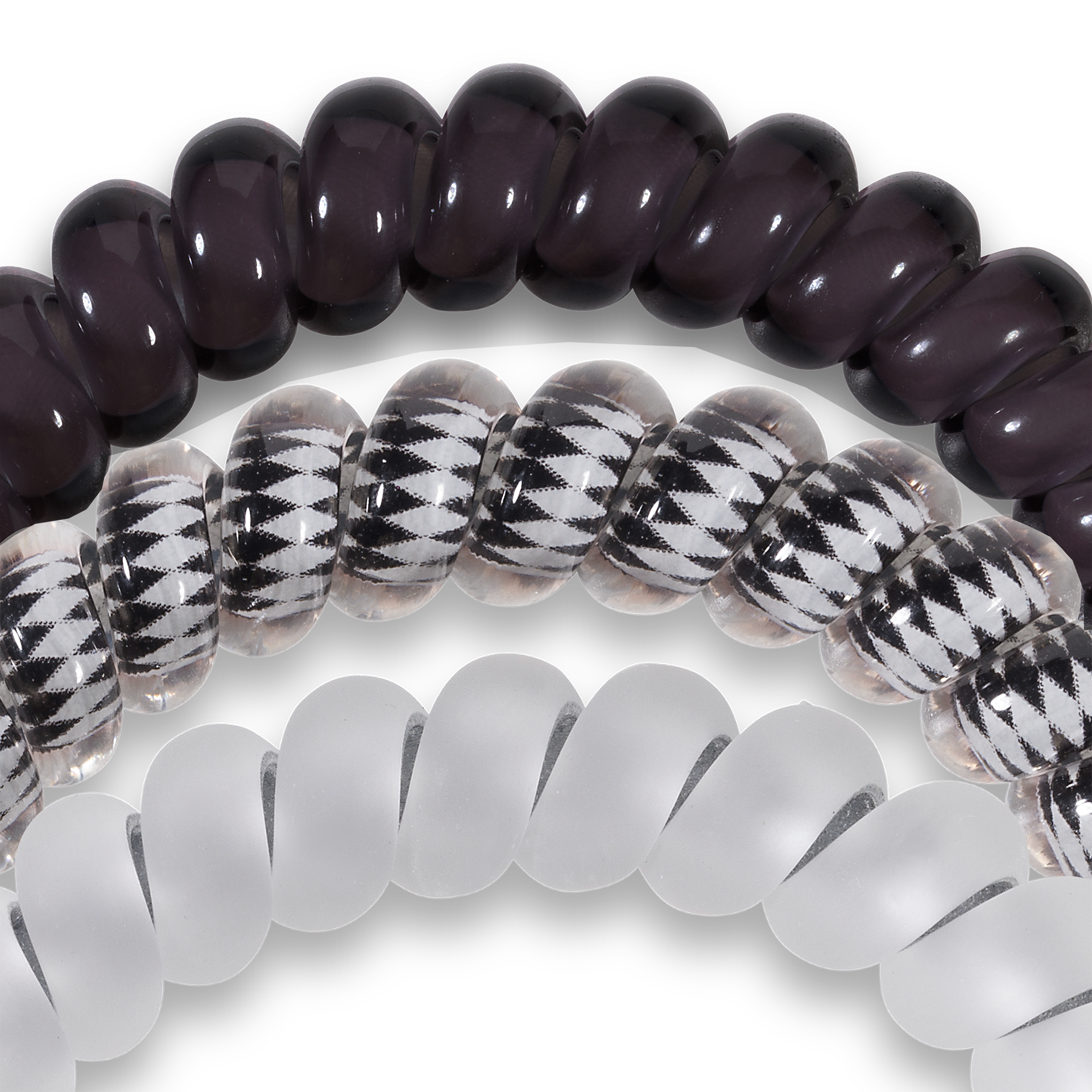 Silver Flames - Small Spiral Hair Coils, Hair Ties, 3-pack