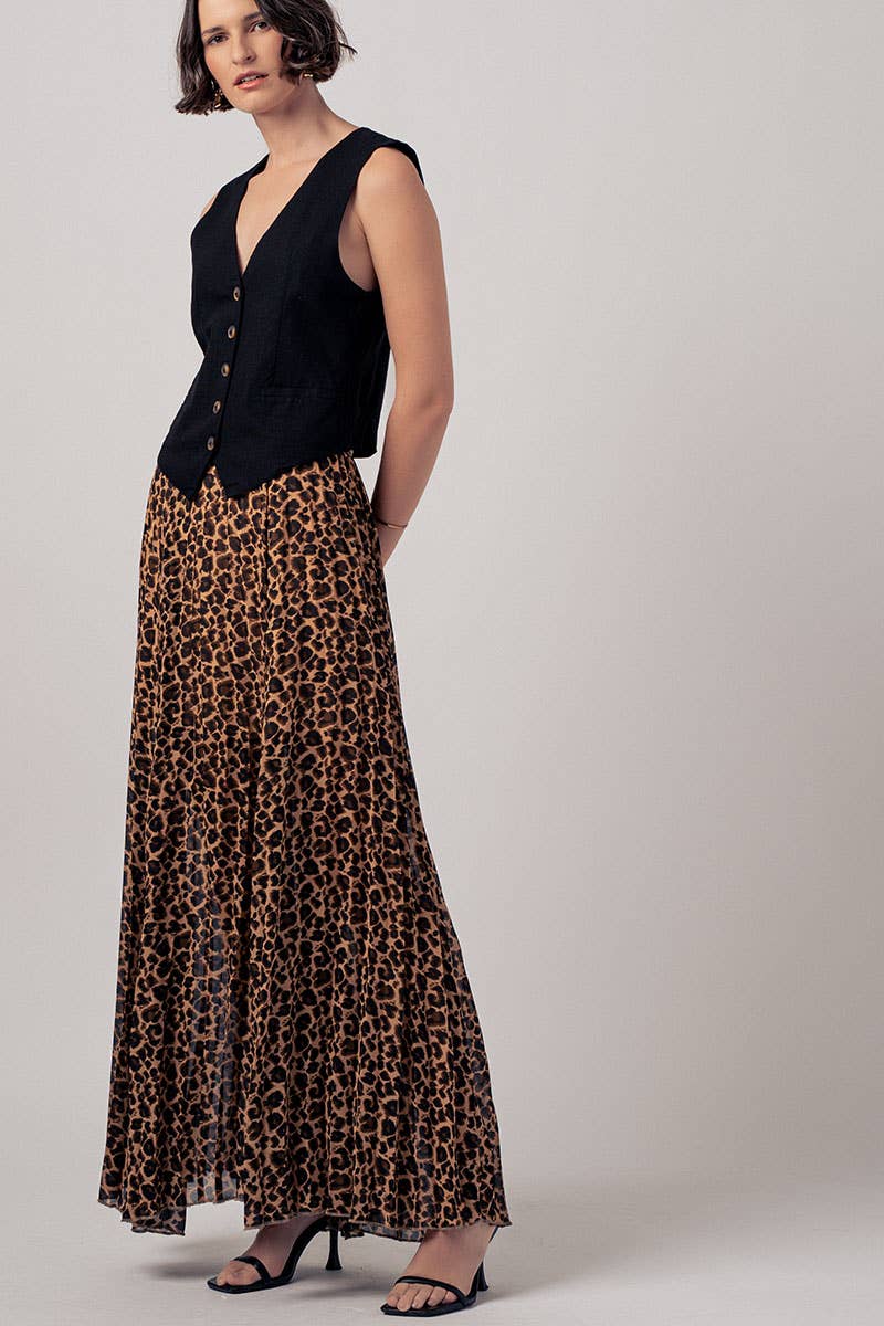 Make a statement with this elegant leopard print midi skirt featuring graceful pleats and a flattering A-line silhouette. The fluid polyester fabric creates beautiful movement while the elastic waistband ensures all-day comfort. Perfect for both dressy occasions and elevated casual wear.