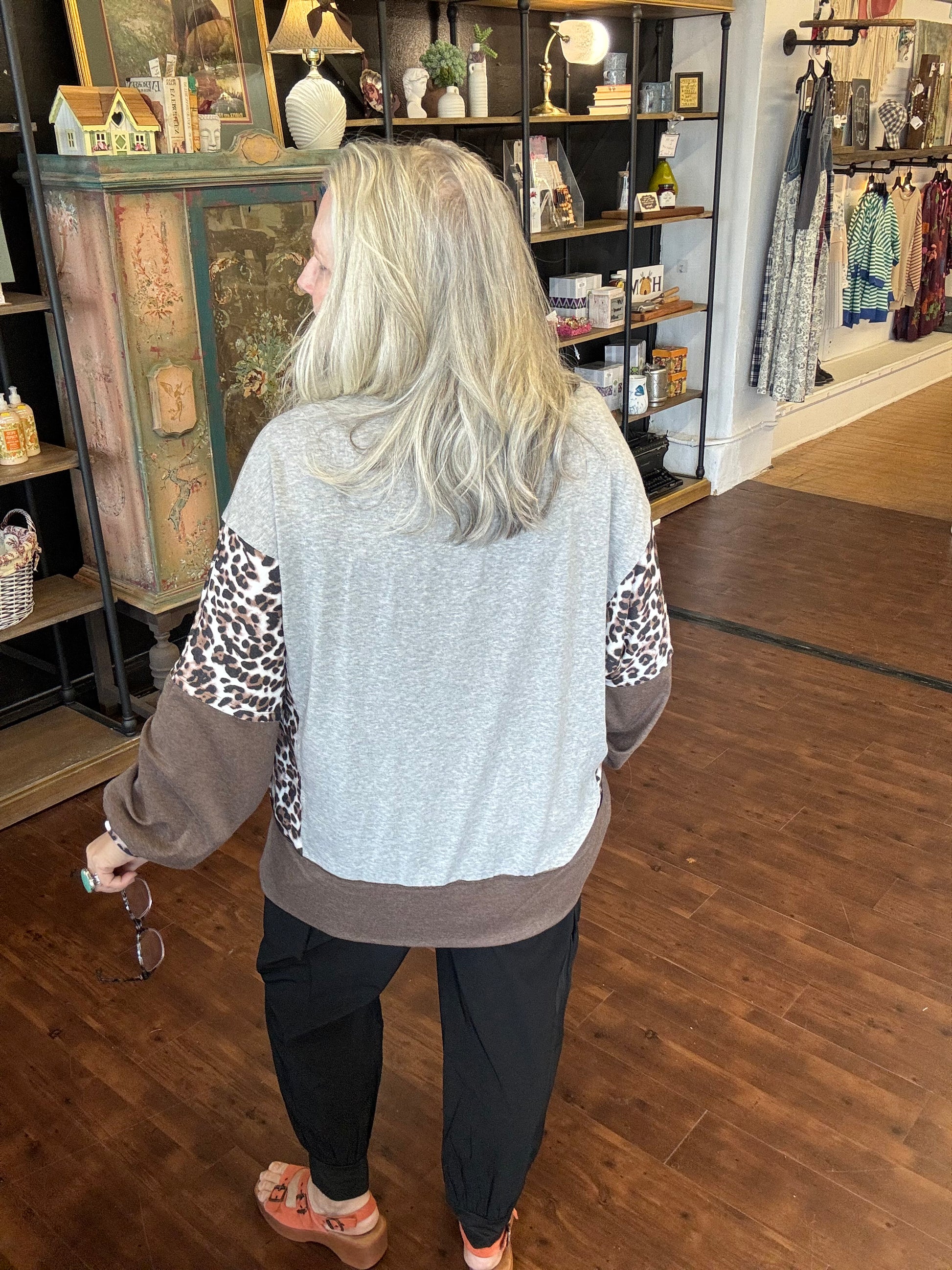 Urban Prowl Oversized Pullover brings effortless cool to your everyday rotation. This oversized sweatshirt blends color block and leopard patchwork for a bold, eye-catching look that stands out. The baggy silhouette and solman sleeves deliver that relaxed, laid-back vibe you're after, while the high-low hem adds a modern twist that flatters your frame. Perfect for throwing on when you want comfort without sacrificing style.